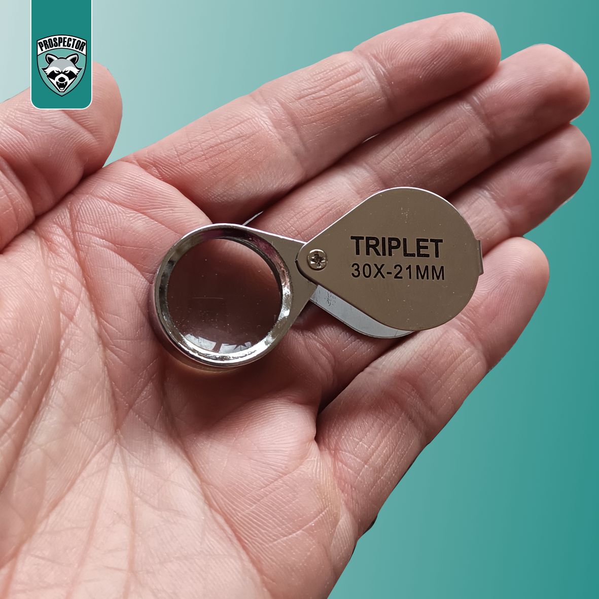 Eine einfache Lupe mit 30facher Vergrößerung für die Hosentasche. Eingeklappt ist die Lupe gut geschützt.
