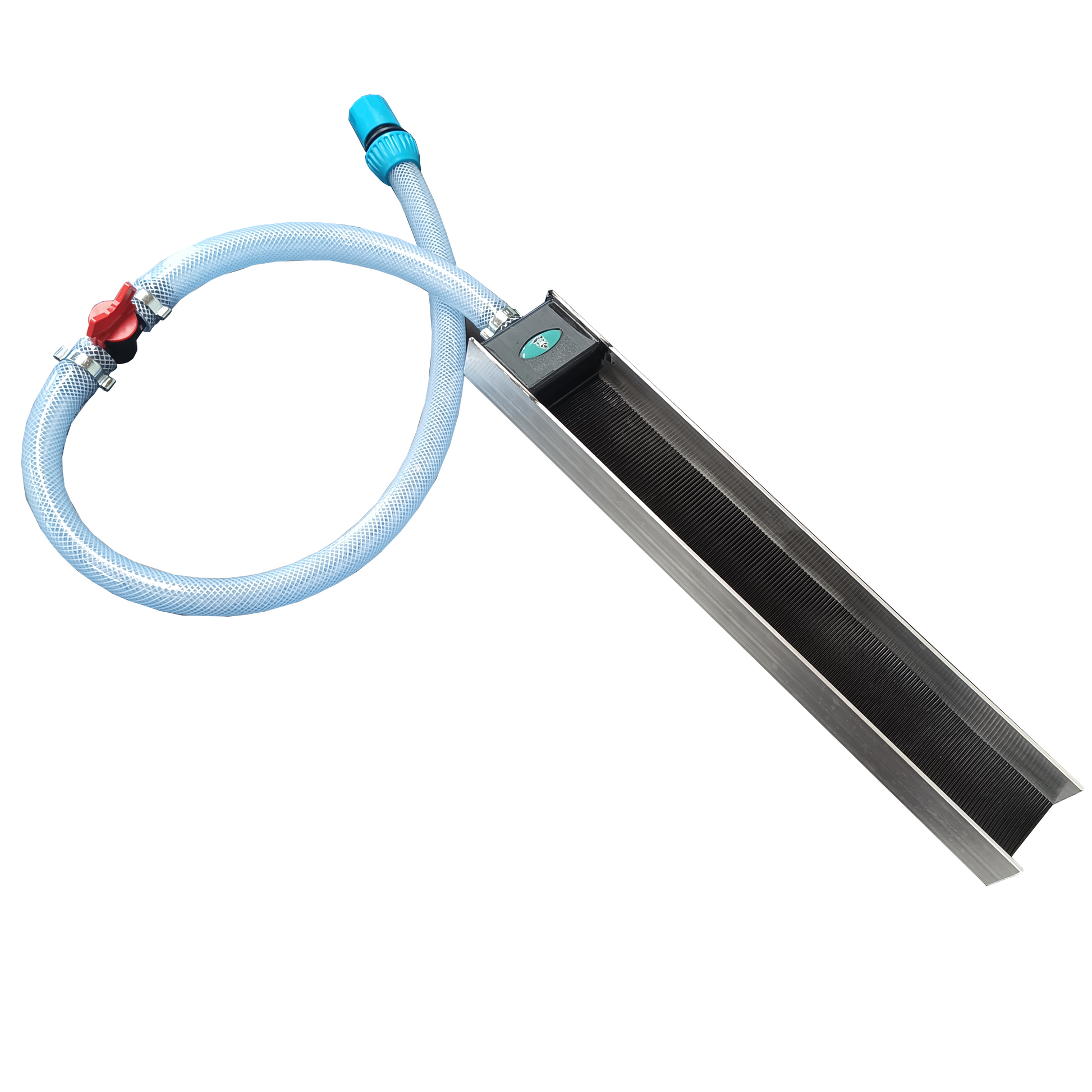 Mit der Auswaschrinne lässt sich Konzentrat mit Schwerminerale und Gold sorgfältig auswaschen. Durch den schnelle Anschluss mit der 3/4" Kupplung lässt es sich bequem an eine Pumpe oder an einen Wasserhahn anschließen.